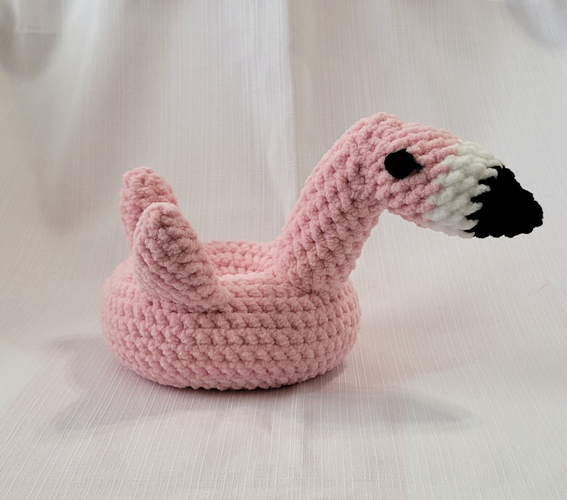 Bring fun and whimsy to your summer days with this stuffed crocheted flamingo pool floatie! Softly crafted for cuddles and play, it adds a cheerful splash of color and charm to any poolside or cozy corner. Perfect for brightening up warm weather moments with a playful touch.