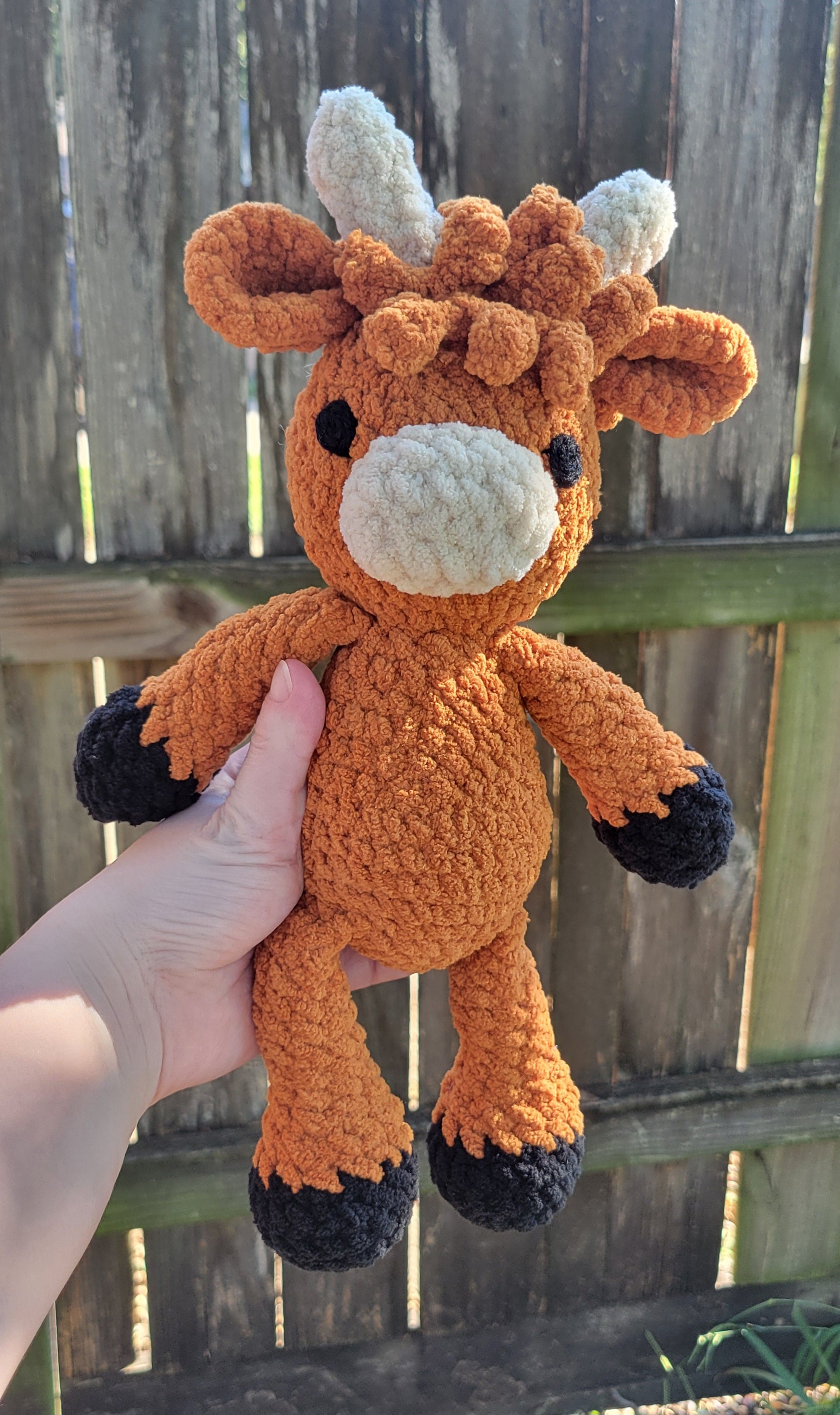 This charming crocheted highland cow features soft, floppy legs and arms that add a playful touch to any space. Perfect for cuddling or as a whimsical decor piece, this handmade companion brings a touch of farmyard fun to your home. Its cozy texture and friendly design make it an irresistible favorite for kids and collectors alike.