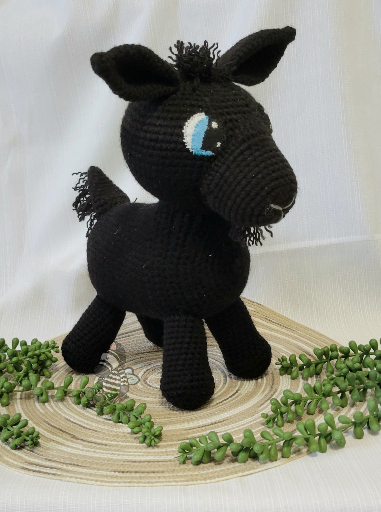 Introducing Mustang the Goat, a delightful and unique addition to any collection. Meticulously crafted with love and care, this charming little goat is made from high-quality yarn, ensuring softness and durability. The delicate hand-sewn felt eyes give it a personal touch, bringing the goat to life with character and warmth.