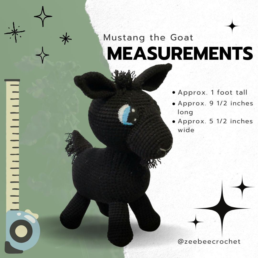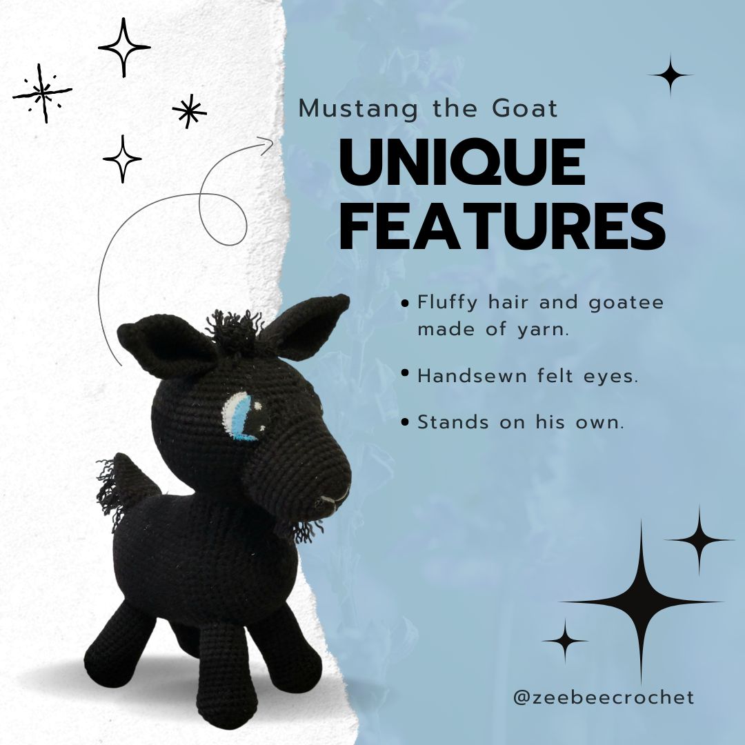 This goat is designed to look like a pet goat who is also named Mustang. The real life Mustang is a very timid yet sweet goat.