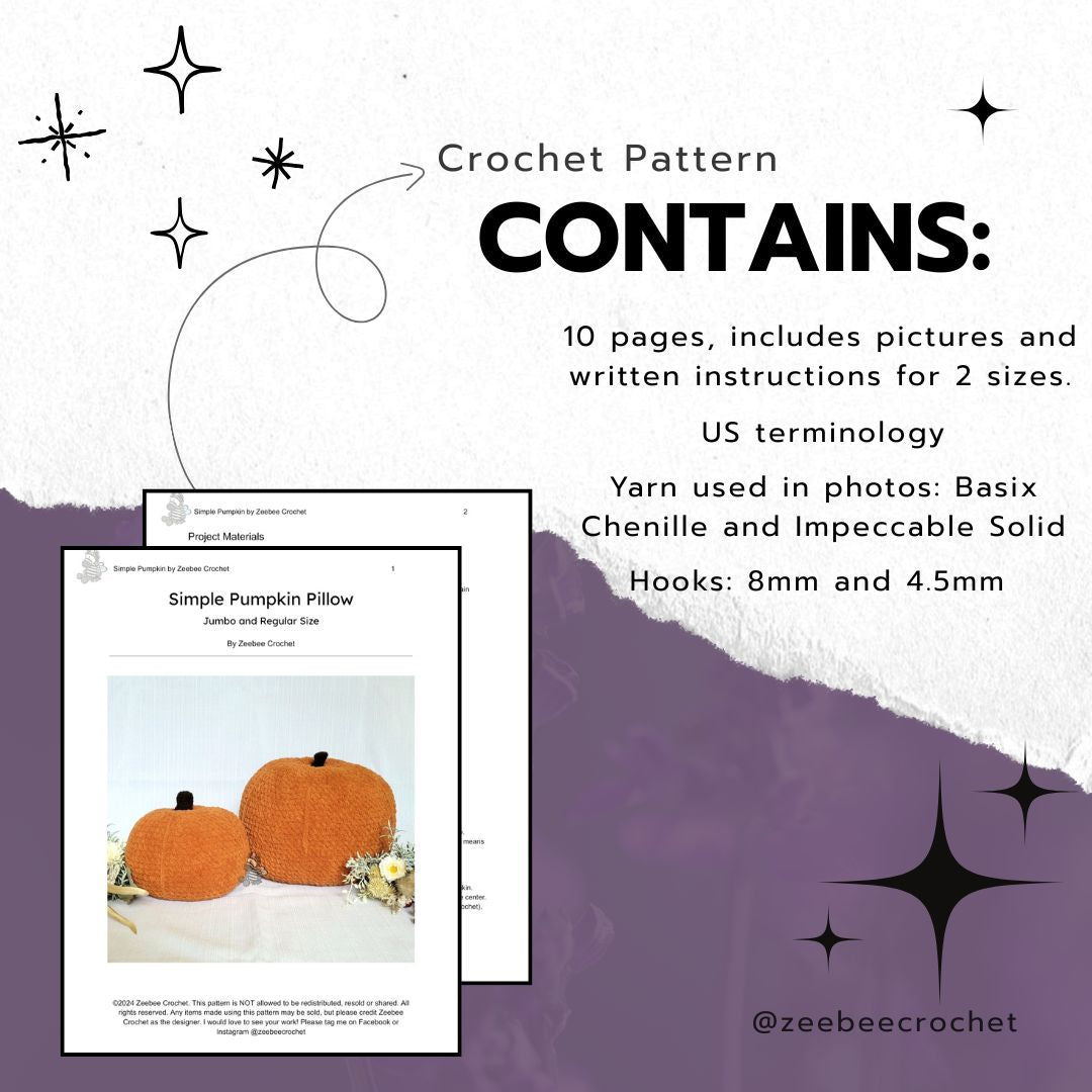 This pattern includes 2 size variations, Jumbo and regular. It is a very beginner friendly pattern and easy to make for fall markets.